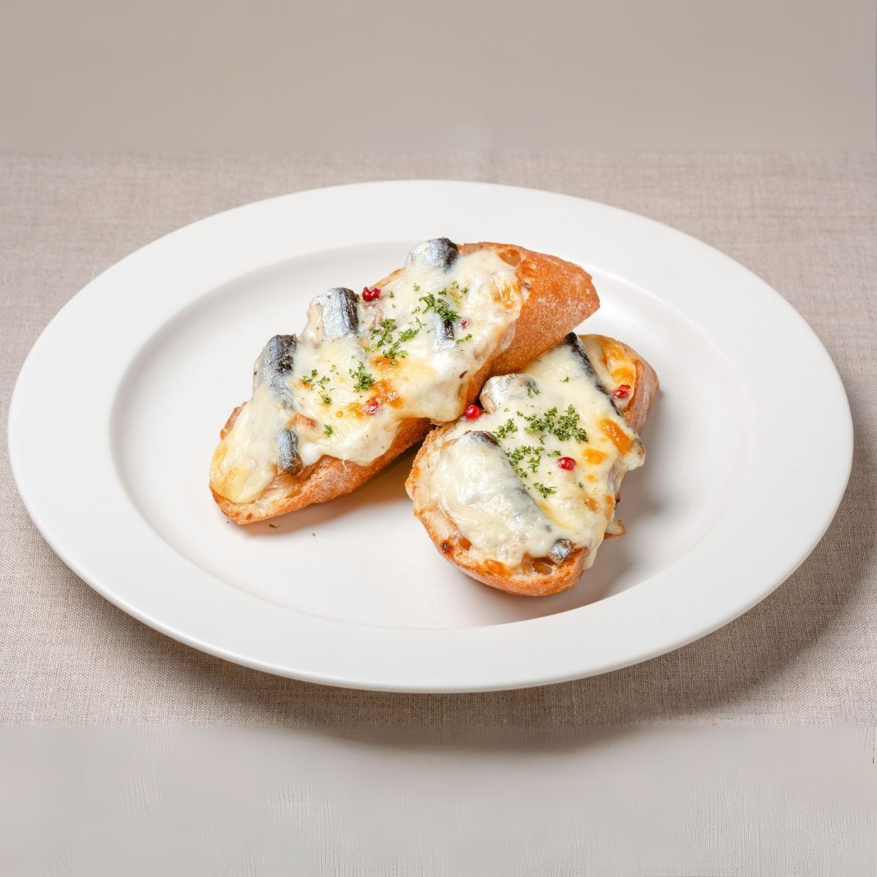 アンチョビペースト、玉ねぎソテーとオイルサーディンを乗せ